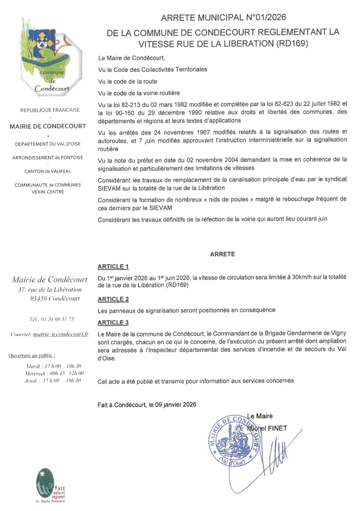 ARRETE VOIRIE 01 2026 LIMITATION VITESSE RUE LIBERATION